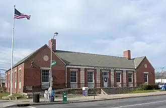 US Post Office-Long Beach is a historic post office building located at Long Beach in Nassau County, New York, United States. It was built in 1936 and designed by the Office of the Supervising Architect under the direction of Louis A. Simon. It is a one-story, symmetrically massed building faced with red brick in the Colonial Revival style. It features a central five bay wide section with a gable roof, flanked by single bay end pavilions with gable roofs perpendicular to the central section. The lobby features a Treasury Section of Fine Arts mural by Jon Corbino titled The Pleasures of the Bathing Beach (1939).[2][3]