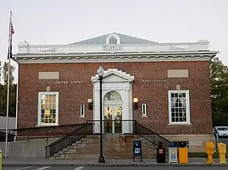 US Post Office-Penn Yan is a historic post office building located at Penn Yan in Yates County, New York. It was designed and built in 1912–1913 and is one of a number of post offices in New York State designed by the Office of the Supervising Architect of the Treasury Department, James Knox Taylor. It is a symmetrically massed, 1+1⁄2-story red brick structure on a granite-clad raised basement in the Colonial Revival style. It is a contributing element in the Penn Yan Historic District.[2]