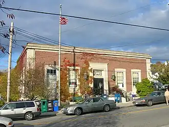 US Post Office-Rye is a historic post office building located at Rye in Westchester County, New York, United States. It was built in 1935 and designed by the Office of the Supervising Architect under the direction of Louis A. Simon. It is a one-story symmetrical flat roofed building in the Colonial Revival style. The front facade features a central, recessed entrance with broad limestone surround and shallow decorated cornice. The lobby features a mural by Guy Pene du Bois painted in 1938 and titled "John Jay at His Home."[2]