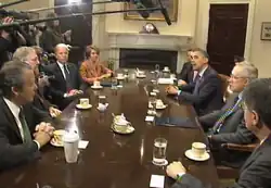121. ^ Lori Montgomery & Zachary A. Goldfarb (November 16, 2012). "Both sides appear upbeat on opening round of 'fiscal cliff' talks". The Washington Post. Retrieved December 6, 2012.