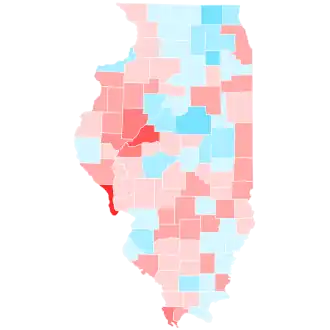 Biden carried Illinois, winning 57.54% of the vote to Trump's 40.55%,[3] winning by roughly the same 17-point margin by which Hillary Clinton carried the state in 2016. Libertarian nominee Jo Jorgensen, a native of Grayslake, won 1.1% of the state's vote, with other minor candidates winning less than 1%.[4] Biden's win in Illinois was largely the result of a lopsided 74.3% victory in Cook County, the state's most populous county and the home of Chicago. In fact, without Cook County, Trump would have won Illinois, going from a Biden victory of 1,167,704 votes to a Trump victory of 142,680 votes.