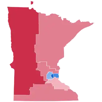 Some media outlets recorded the votes by congressional district, rather than by county. Rubio won districts 1, 2, 3, 4 and 5 in the Minneapolis-Saint Paul area as well as the southern part of the state. Cruz won districts 6, 7 and 8 in the St. Cloud area and rural north.[4]