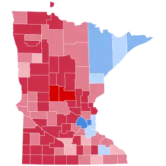 Trump's votes came from less populated, rural counties. Two counties, Morrison and Todd, gave Trump over 70% of the vote, making this the first election since 1968 where either major party candidate won a county with over 70%, with Trump also being the first Republican to do so since Dwight D. Eisenhower in 1956.