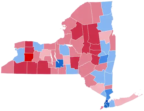 New York voted 19% more Democratic than the national average. This was the first time since 1992 that Orange, Oswego, Washington, Madison, and Warren counties voted for the losing presidential candidate, as well as the first since 1976 that a Democrat won without Cayuga, Cortland, Otsego, Seneca, Franklin, Niagara, and St. Lawrence counties, and the first since 1960 that a Democrat won without Sullivan County.