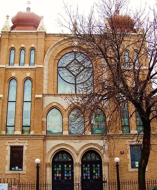 The 1915 building of the Congregation Star of Israel is among the oldest synagogue buildings in New Jersey. It was closed for two decades before being reopened in 1989. It continues in use by the congregation. A thorough external restoration was completed in 2009 with the assistance of a $280,000 matching grant from the New Jersey Historic Trust.[3] The synagogue is listed on both the NJ Register of Historic Places and the National Register of Historic Places.[4]