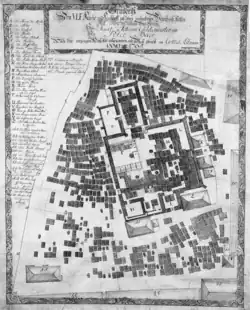 Central squares of Bremen, exact map of 1796. Area around "Unser Lieben Frauen Kirche" marked as a graveyard, but not fenced.