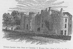 In the second half of the 18th century, Captain John Tasker of the East India Company purchased Upton Castle; among the eventual beneficiaries after his death were members of the Evans family.[6] In 1833, Lewis, in his Topographical Dictionary of Wales, recorded that the parish was occupied by a single family of six inhabitants. At that time Nash-cum-Upton was a rectory in the non-adjoining Nash parish, to the south. Lewis described the former inhabitants of the castle and its dependencies as Maliphant (sic), then Bowen, then Evans.[2] In 1872, Upton was described as a hamlet in Nash parish, with a population of 24 in three houses. It covered an area of 435 acres (176 ha), 105 acres (42 ha) of which were water.[7]
