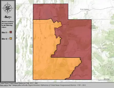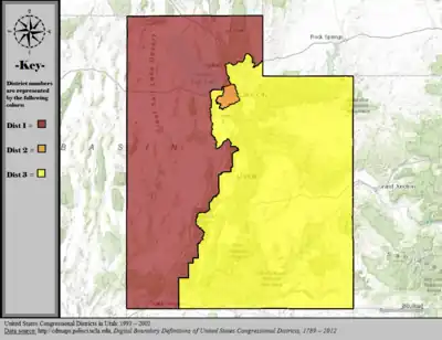 Table of United States congressional district boundary maps in the State of Utah, presented chronologically.[7] All redistricting events that took place in Utah between 1973 and 2013 are shown.