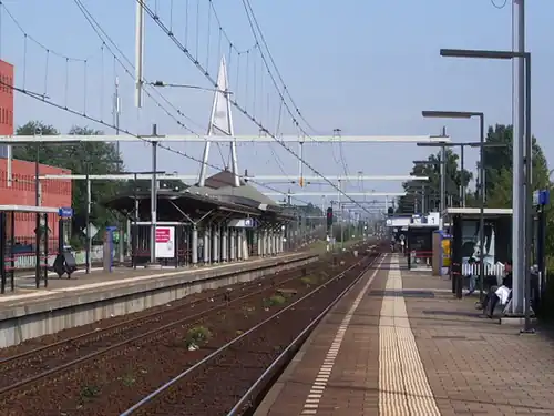 Utrecht Overvecht is a railway station located in Overvecht, Utrecht, Netherlands. The station opened in 1968 and is on the Utrecht–Kampen railway. The station has had 3 platforms since 1992. It also has a kids' slide from the outside street for use by busy passengers.