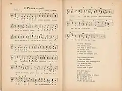 Musical notation and original text of the song, published in Naše pjesme, Zagreb, 1945