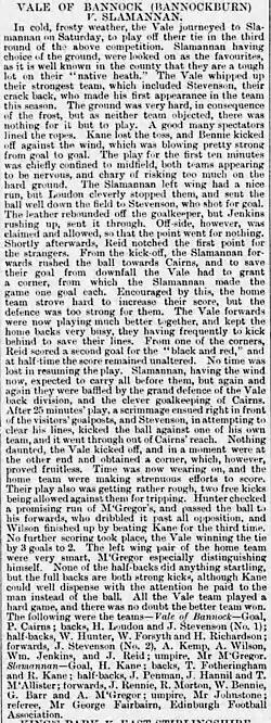 - ^ "Vale of Bannock (Bannockburn) v Slamannan". Bridge of Allan Gazette: 3. 17 December 1887.