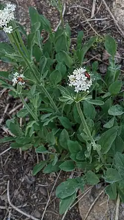 Valeriana californica is a species of flowering plant in the honeysuckle family known by the common name California valerian. It is native to Oregon, northeastern California, and Nevada, where it occurs in moist, forested mountain habitat. It is an erect herb up to half a meter tall with whorls or opposite pairs of deeply lobed leaves at intervals along stem. The inflorescence is a cyme of many funnel-shaped white or pink-tinged flowers each about half a centimeter long with three long, protruding stamens. The fruit is a ribbed achene about half a centimeter long which may be tipped with the featherlike remains of the flower sepals.