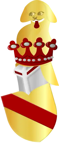 Coat of arms of Baer, as depicted in Gelre Armorial, with crest representing a puppy head.