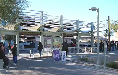 Van Buren/1st Avenue and Van Buren/Central Avenue stations, also known as ASU Phoenix Campus, is a pair of Valley Metro Rail stations on the B Line of the Valley Metro Rail system in Downtown Phoenix, Arizona. Despite having at least four different names, it is all actually one facility, which serves as a stop for various city buses.