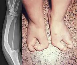 1. ^ a b c d e "Ulnar hypoplasia-split foot syndrome". www.orpha.net/consor/cgi-bin/index.php. Retrieved 2022-10-22.