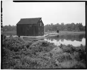 Van Wyck-Lefferts Tide Mill (/væn ˈwk/ van WYKE) is a historic tide mill located at Lloyd Harbor in Suffolk County, New York. It was built about 1793 and is a 3+12-story, gable-roofed, timber-framed rectangular building little altered since the early 19th century. The property also includes the earthen mill dam with sluice gates.[2] The Lefferts Tide Mill and Preserve, which owns the mill, partners with the Huntington Historical Soceiety, offers boat tours to the site and tours of the Tide Mill from May through October.[3]