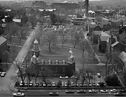 The oldest part of the Vanderbilt campus is known for its abundance of trees and green space, which stand in contrast to the surrounding cityscape of urban Nashville.[155] The campus was designated as a national arboretum in 1988 by the Association of Botanical Gardens and Arboreta, and in 2020 it was accredited as a Level II arboretum by ArbNet.[156] Approximately 190 species of trees and shrubs can be found on campus.[155] One tree, the Bicentennial Oak between Rand Hall and Garland Hall, was certified to have lived during the American Revolution and was the oldest living thing on the campus.[155] The Bicentennial Oak succumbed to age-related decay and fell on November 12, 2022.[157] In December 2015, a hackberry tree fell, leaving 10 students injured with "broken bones and stitches."[158][159] Additionally, in August 2022, a tree fell on Peabody Lawn, leaving two students injured.[160]