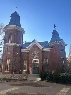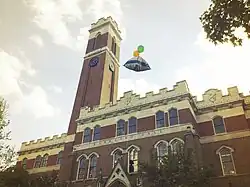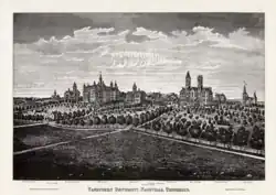 In 1905, Main Building (Kirkland Hall), which originally had two Victorian towers, burnt down and was rebuilt in an Italianate design with a single 170-foot tower after the university received donations totaling over $50,000.[28] There is speculation that the school initially intended to rebuild both towers of the original Kirkland Hall but lacked the funds to do so.[24]