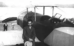 After the plane was finished, it was moved to the Seydiköy Airfield where engine and taxiing tests took place.[7] Hürkuş asked for a flying permit, and a technical committee was formed to certify the plane. However, this committee lacked qualified personnel to fly the plane.[12] Hürkuş waited almost a month for a team to inspect the plane.[13] One of the members later told Hürkuş that they could not give him the license, and said that he "should hop in and fly if he trusts [his] plane".[14] On 28 January 1925, Hürkuş arrived at the airfield, which was completely empty.[15] At 15:00 local time, Hürkuş took off after a short roll and made a 15-minute flight with Vecihi K-VI.[7] In the back seat, there was a sand bag of 60 kilograms (130 lb) to simulate a second pilot. This was the first flight ever to use a Turkish-built plane.[16] By the time he came back, the airfield was filled with a crowd who were cheering for him.[17] After landing, Hürkuş was greeted by his celebrating friends.[7]