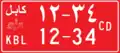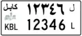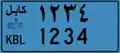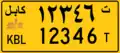 However, the 5-digit code in the capital province of Kabul was exhausted. Thus, newer license plates have an additional extra digit, only in Persian, located separately from the actual numerical code. In addition, two hyphens are shown at the top and bottom of the 6th number.[1]