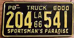 - ^ a b c Tanner, Eric N. "Louisiana Passenger License Plates". allaboutlicenseplates.com. Retrieved November 20, 2020.