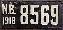 1918 | White serial on black flat metal plate; "N.B. 1918" at left | none | 12345 | 3000 to approximately 11700 | |