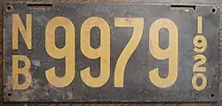 1920 | Yellow serial on black flat metal plate; vertical "NB" and "1920" at left and right respectively | none | 12345 | 1000 to approximately 11800 | |