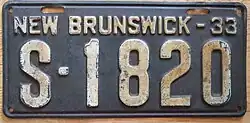 1933 | Embossed white serial on dark blue plate; "NEW BRUNSWICK-33" at top | none | A-1234 | Coded by region (A) | |
