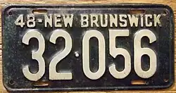 1948 | Embossed white serial on black plate; "48-NEW BRUNSWICK" at top | none | 12·345 | 1000 to approximately 42·500 | |