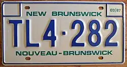 - ^ a b c d e f g h i j k l m n "New Brunswick License Plates". www.licenseplates.cc. Retrieved December 5, 2023.