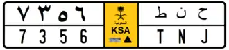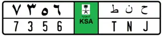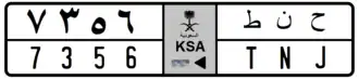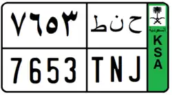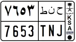 ![]() Current regular legal standard number plate from Saudi Arabia. | |