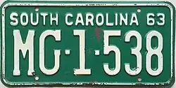 2. ^ Tanner, Eric N. "South Carolina Passenger License Plates". allaboutlicenseplates.com. Retrieved November 11, 2020.