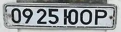 The license plates are black-on-white. The standard format is four digits followed by Cyrillic letters ЮОР (Юго-Осетинская Республика, Russian for South Ossetian Republic). This system provides just 9,999 possible combinations. Newer system uses format like in Russian license plates: One letter, three digits and two letters with South Ossetian country flag and country code "RSO" in it. Government vehicles uses three digits and three letter format.