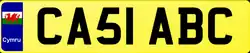 UK regular legal standard front (top) and rear (bottom) number plates.