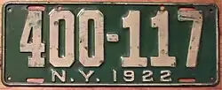 Vehicle registration plates of the United States for 1922