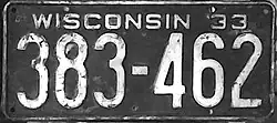 Duplicate | Embossed white serial on black plate with border line; "WISCONSIN 33" at top, diagonal "DUPL" at left | 1234 | 1 to approximately 2700 | ||