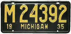 Each of the 48 states of the United States of America plus several of its territories and the District of Columbia issued individual passenger license plates for 1935.[1][2][3][4]