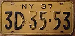 Vehicle registration plates of the United States for 1937