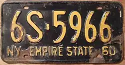 Each of the fifty states of the US plus many of its territories and the District of Columbia issued license plates for registered vehicles for the calendar year 1960.[1][2][3][4]