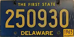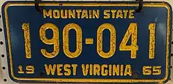 Each of the 50 states of the United States of America plus several of its territories and the District of Columbia issued individual passenger license plates for 1965.[1][2][3][4]