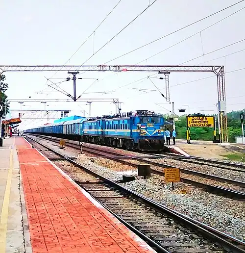 Venkatagiri railway station (station code: VKI[1]) is an Indian Railways station in Venkatagiri town of Andhra Pradesh. It lies on the Gudur–Katpadi branch line and is administered under Guntakal railway division of South Coast Railway zone.[2]