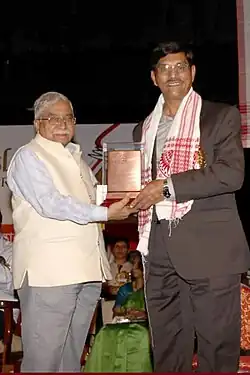 Dr. Venna Vallabha Rao receiving Sahitya Akademi Award in June 2018 at Guwahati, Assam.