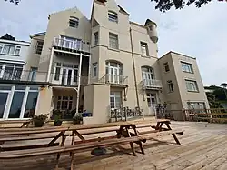 Ventnor Towers Hotel was a large hotel in Ventnor on the Isle of Wight. The building was constructed in 1872 and has been extended multiple times since its initial construction.[1] It is notably one of the few hotels on the Isle of Wight to have a functioning Helipad.[2] The hotel is south-facing, and sits little more than a few hundred feet from the steep cliffs that give access to Bonchurch. Documents on display inside the hotel mention of a similar hotel in the neighbouring town of Shanklin having been built around the same time as this hotel, but it has long since been defunct.