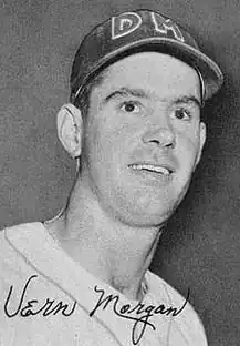 Vernon Thomas Morgan (August 8, 1928 – November 8, 1975) was an American third baseman and coach in Major League Baseball, and a manager and longtime player (1948–64) at the minor league level. A native of Emporia, Virginia, who attended the University of Richmond, Morgan threw right-handed, batted left-handed, stood 6 ft 1 in (1.85 m) (185 cm) tall and weighed 185 pounds (84 kg).