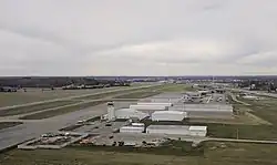 The airport covers 1,300 acres (526 ha) at an elevation of 472 feet (144 m). It has two runways: the primary runway 2/20 is 8,012 by 150 feet (2,443 x 46 m) asphalt; and the crosswind runway 11/29 is 4,997 by 100 feet (1,523 x 30 m) asphalt/concrete.[1]