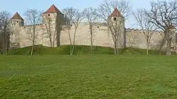 At the southeastern corner of the castle stands the so-called Eastern Prismatic Tower, built in the 14th century to protect the castle area from the east. South of this tower archaeological remains have been uncovered of walls of a medieval Eastern Castle Palace, which probably dates from the late 15th century and was pulled down before the mid-17th century.