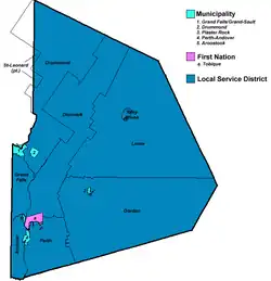 Grand Falls 158.04 1,109 Grand Falls/Grand-Sault (town) Argosy / California Settlement / Costigan / Four Falls / Gillespie Settlement / Grand Falls Portage /