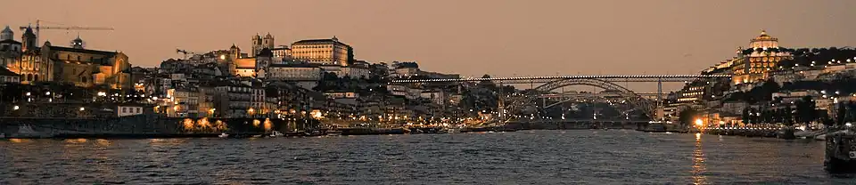 Panoramic view from Dom Luís I Bridge, with Gaia on the left, Porto on the right