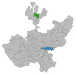 Villa Guerrero is a municipality in the north of the state of Jalisco, Mexico. It is located between 103°22′30″ and 103°50′00″ longitude west and 21°54′00″ and 22°10′00″ latitude north, at an altitude of 1,767 metres (5,797 ft) above sea level. The municipality covers an area of 673.3 square kilometres (260.0 sq mi).