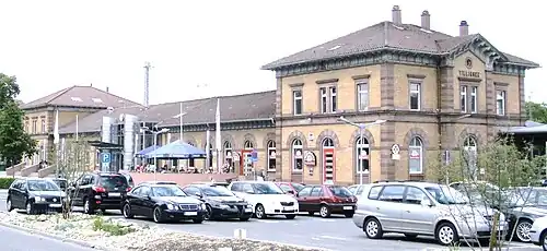 Villingen (Schwarzwald) station (officially called Villingen (Schwarzw) by Deutsche Bahn)[1] is one of two stations in Villingen-Schwenningen in the German state of Baden-Württemberg. The other is Schwenningen (Neckar). In addition, there are five more halts (Haltepunkte). The station is located east of the old town of Villingen beyond the Brigach. It is located at 704 metres above sea level on the Black Forest Railway and it is the terminus of the Rottweil–Villingen railway.